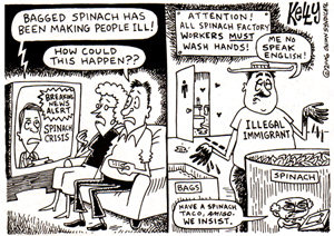 ![]() 1 MAY 06 - Devil in a Red Dress – May Day has always been my favorite holiday of the year. Not only is it International Workers Day but in Northern Europe it is Walpurgis Night (or Vappu in Finland apparently). A quick trip to Wikipedia also confirms that it is Green Man Day. Much of this tradition derives from the pagan festival of Beltane although here in the US it is noted for the commemoration of the Haymarket Riot of 1886 in Chicago. This year it was also the Día Sin Ningún Inmigrante" which was marked by huge protests and boycotts across the nation basically scare the shit out of all the bigots and politicians who are advocating the racist and inhumane H.P. 4437, the so called "Border Protection, Antiterrorism, and Illegal Immigration Control " bill currently winding its way through the U.S. Senate. As a one time illegal immigrant myself I joined in the solidarity celebration dressed in devil horns to depict the demonizaction of Latino and other immigrant workers. People tend to forget that it's not just dish-washers and cleaners who come from other countries just to make a living. Cartoonists are immigrants as well. In fact the large number of US editorial cartoonists were born outside the country including Pat Oliphant (Australia), Lalo Alcaraz (Mexico), Oscar Berger (Czech Republic), Michael Ramirez (Japan) and Ann Telnaes (Sweden). Even Thomas Nast was born in Germany. |